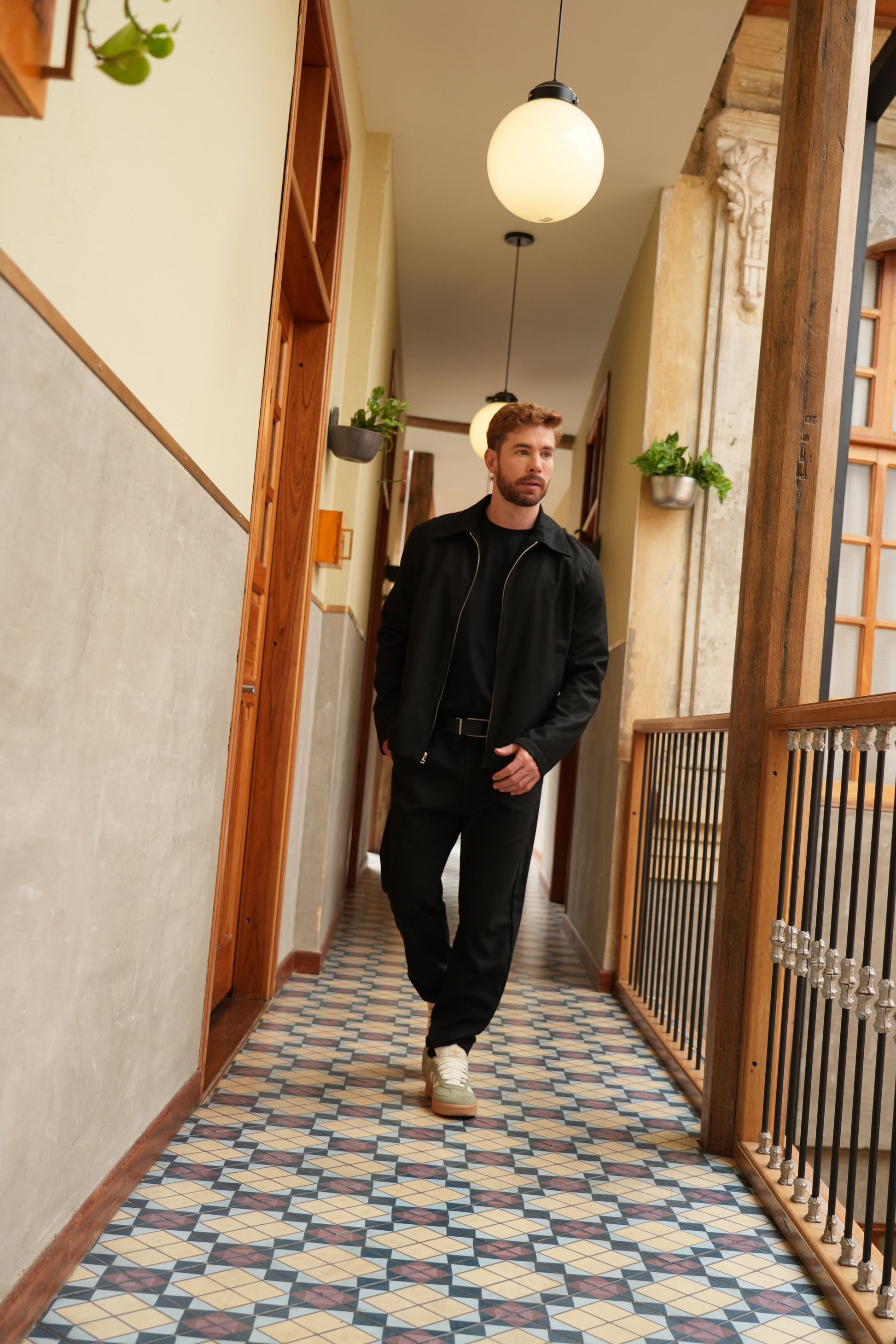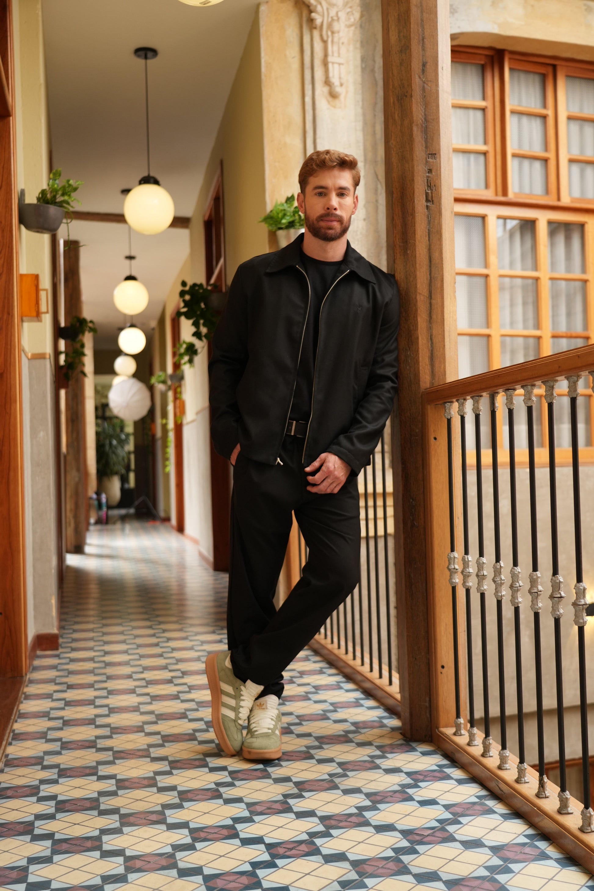 El modelo mide 1.74m y está usando la talla M.